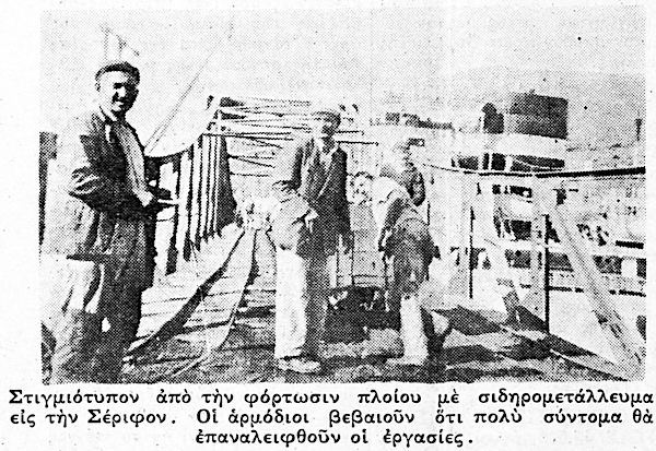 [5]: Φόρτωση μεταλλεύματος. Αρχείο Μάνου Ν. Λιβάνιου | Επίτιμου Προέδρου Συνδέσμου Σεριφίων.